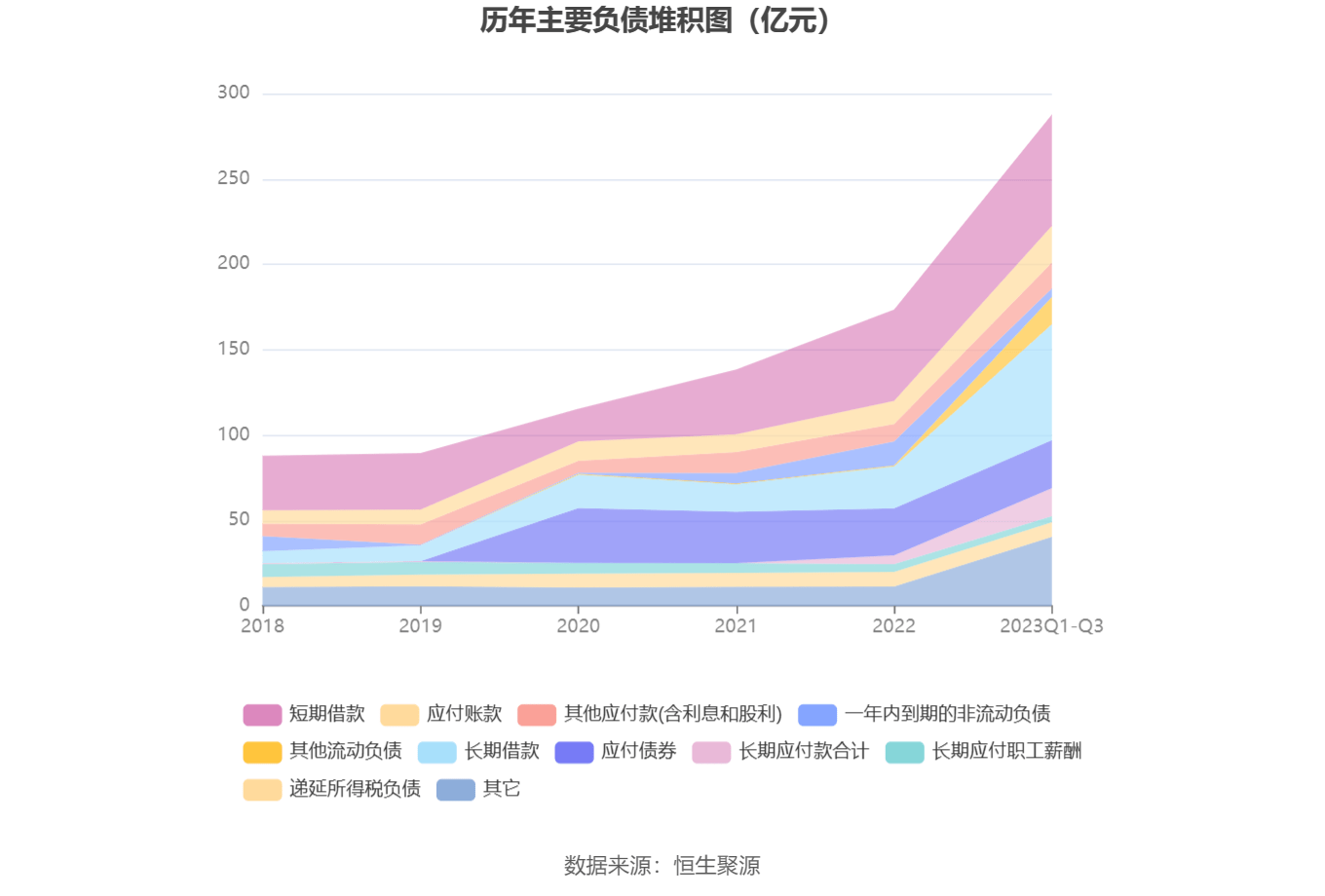 负债重大变化方面,截至2023年三季度末,公司长期借款较上年末增加176.42%,占公司总资产比重上升7.43个百分点;其他流动负债较上年末增加2628.33%,占公司总资产比重上升3.32个百分点;短期借款较上年末增加21.58%,占公司总资产比重下降2.07个百分点;长期应付款合计较上年末增加213.44%,占公司总资产比重上升2.00个百分点。