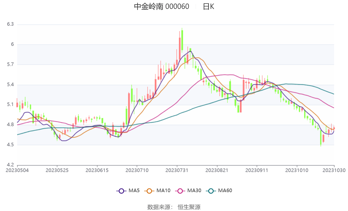 中证智能财讯 中金岭南(000060)10月31日披露2023年三季报。2023年前三季度,公司实现营业总收入528.48亿元,同比增长12.48%;归母净利润7.16亿元,同比下降31.53%;扣非净利润6.64亿元,同比下降33.76%;经营活动产生的现金流量净额为1.29亿元,同比下降84.79%;报告期内,中金岭南基本每股收益为0.19元,加权平均净资产收益率为5.17%。