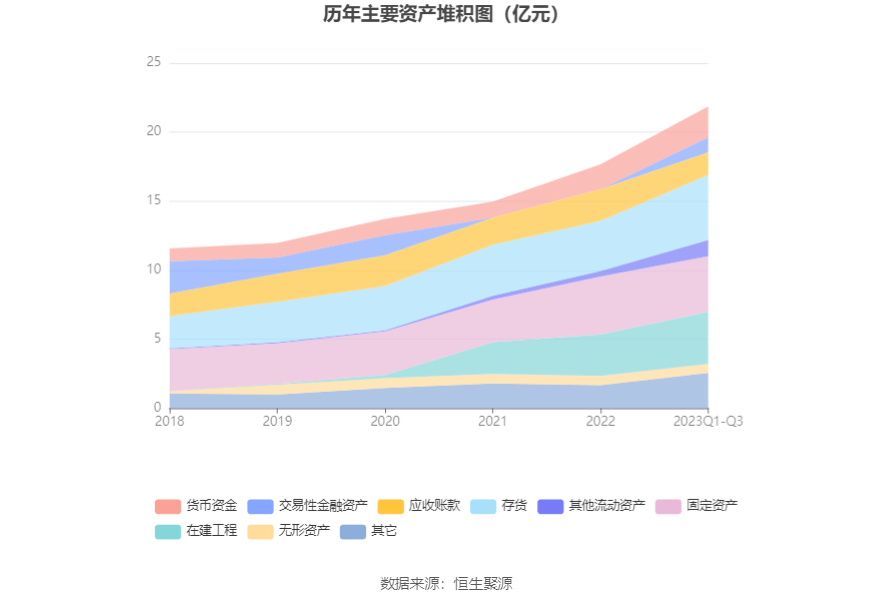2023年前三季度,公司经营活动现金流净额为-4710.30万元,同比减少1.70亿元,主要系购买商品、接受劳务支付的现金增加所致;筹资活动现金流净额4.34亿元,同比增加3.50亿元,主要系本报告期收到向特定对象发行股票募集的资金所致;投资活动现金流净额-2.71亿元,上年同期为-1.45亿元,主要系本报告期向特定对象发行股票募集资金进行现金管理所致。