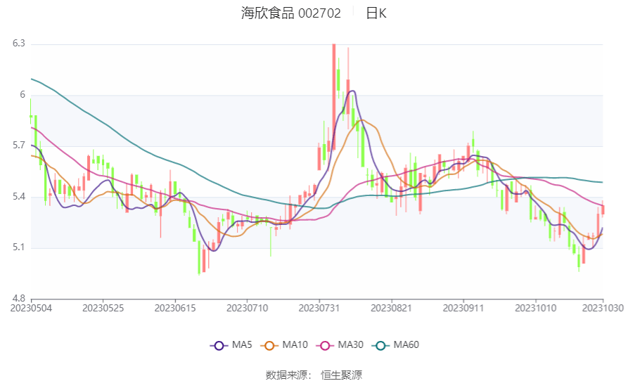 以10月30日收盘价计算,海欣食品目前市盈率(TTM)约为222.99倍,市净率(LF)约为2.56倍,市销率(TTM)约为1.79倍。