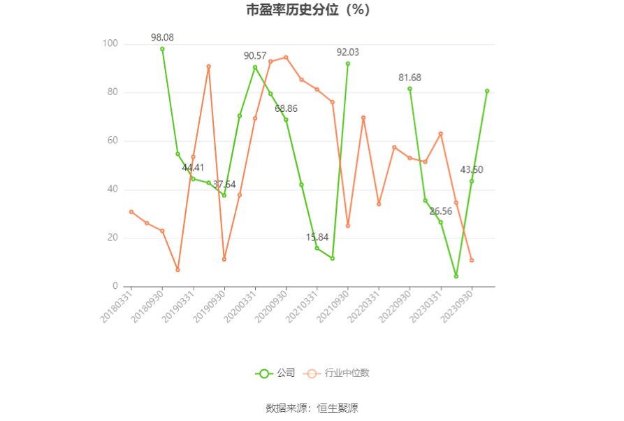 市盈率为负时,不显示当期分位数,会导致折线图中断。