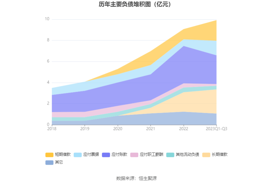 负债重大变化方面,截至2023年三季度末,公司短期借款较上年末增加101.13%,占公司总资产比重上升3.43个百分点,主要系本报告期新增贷款;应付账款较上年末减少23.05%,占公司总资产比重下降7.61个百分点;应付票据较上年末增加119.05%,占公司总资产比重上升2.74个百分点;长期借款较上年末增加24.09%,占公司总资产比重上升0.02个百分点。