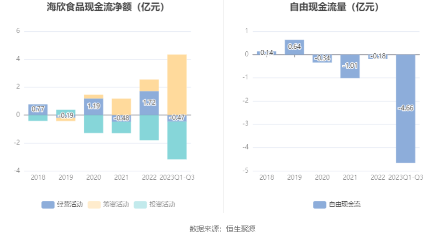 进一步统计发现,2023年前三季度公司自由现金流为-4.66亿元,上年同期为-0.94亿元。