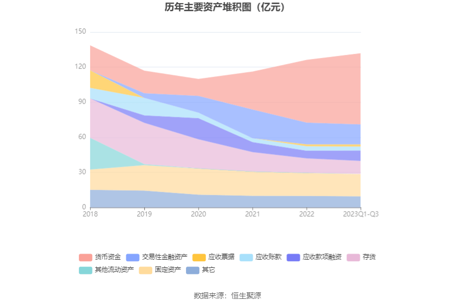 资产重大变化方面,截至2023年三季度末,公司货币资金较上年末增加13.28%,占公司总资产比重上升3.62个百分点;交易性金融资产较上年末减少8.39%,占公司总资产比重下降1.80个百分点;应收款项融资较上年末增加38.39%,占公司总资产比重上升1.67个百分点;存货较上年末减少10.54%,占公司总资产比重下降1.41个百分点。