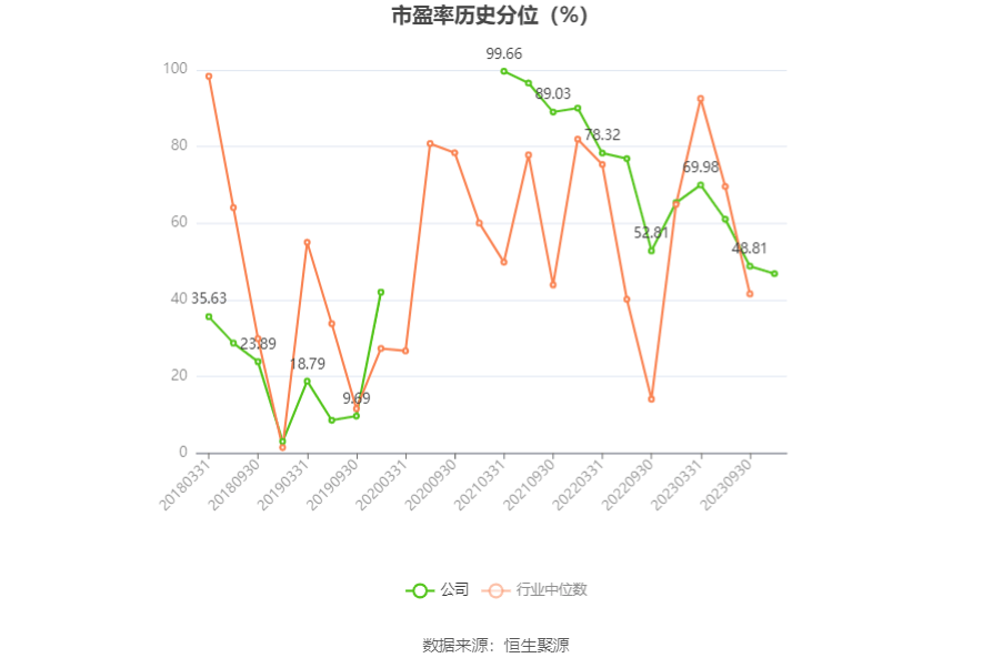市盈率为负时,不显示当期分位数,会导致折线图中断。