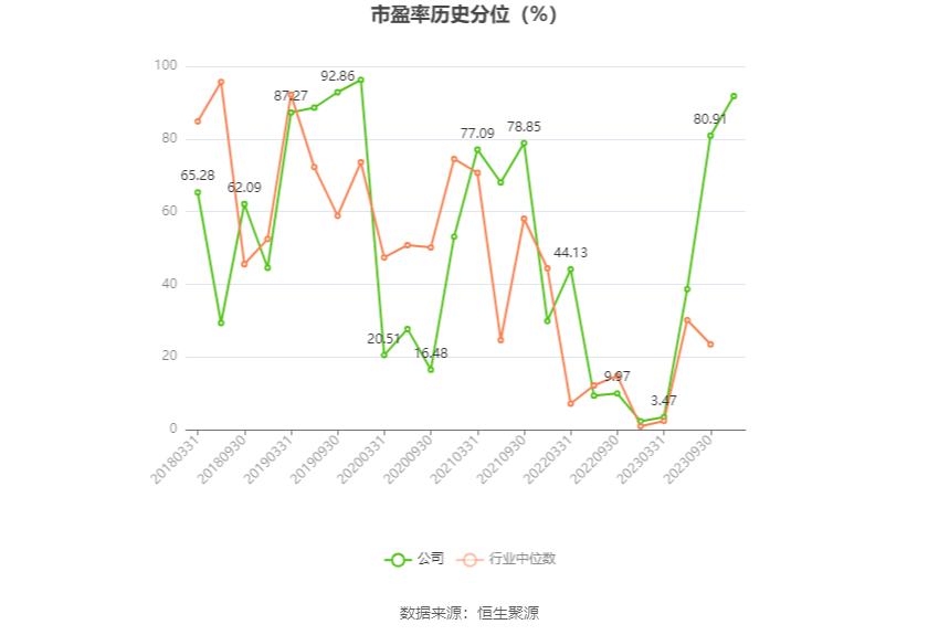 市盈率为负时,不显示当期分位数,会导致折线图中断。