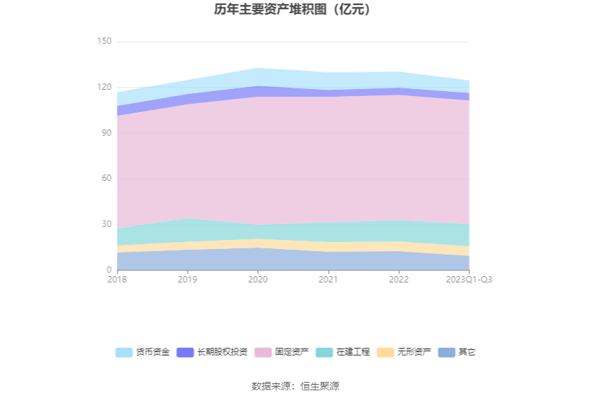 资产重大变化方面,截至2023年三季度末,公司固定资产较上年末减少1.35%,占公司总资产比重上升1.98个百分点;货币资金较上年末减少21.47%,占公司总资产比重下降1.43个百分点;预付款项较上年末减少62.03%,占公司总资产比重下降1.42个百分点;在建工程较上年末增加3.61%,占公司总资产比重上升0.90个百分点。
