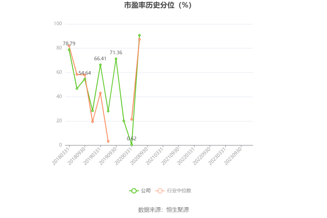 市盈率为负时,不显示当期分位数,会导致折线图中断。