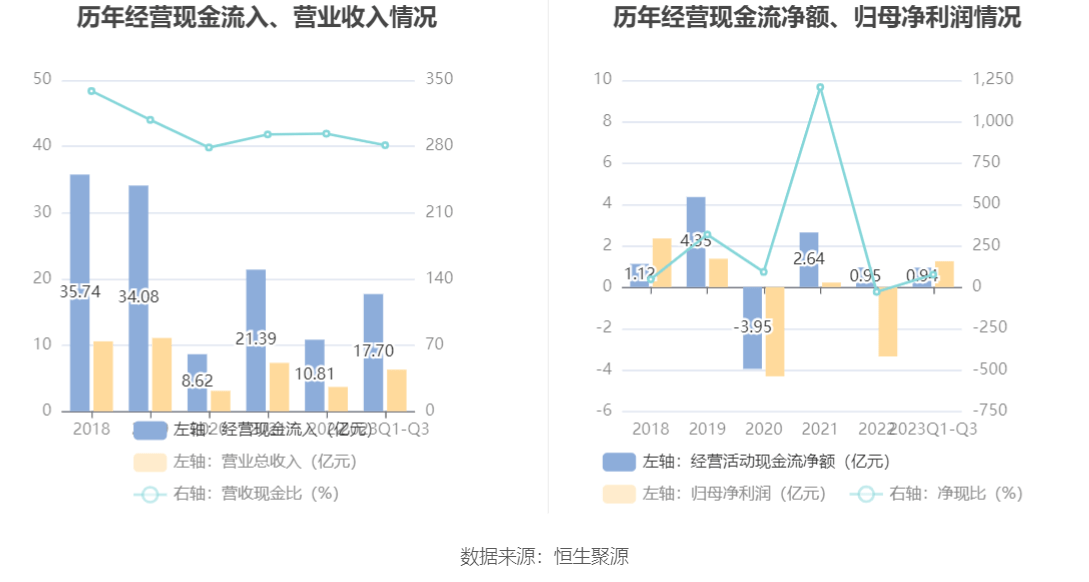 2023年前三季度,公司营业收入现金比为281.17%,净现比为75.74%。