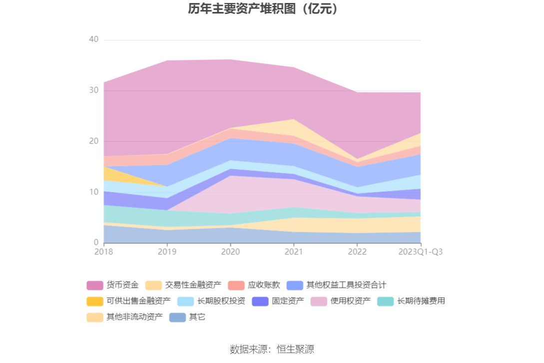 资产重大变化方面,截至2023年三季度末,公司货币资金较上年末减少38.90%,占公司总资产比重下降17.20个百分点;交易性金融资产较上年末增加328.63%,占公司总资产比重上升6.48个百分点;固定资产较上年末增加277.99%,占公司总资产比重上升5.35个百分点;长期股权投资较上年末增加122.91%,占公司总资产比重上升5.07个百分点。