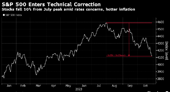 随着投资者担心长期高利率,Wilson过去三个月时不时看跌美股。波动率上升、通胀数据升温背景下,标普500指数上周五进入技术性回调,收盘较近期高点低10%。