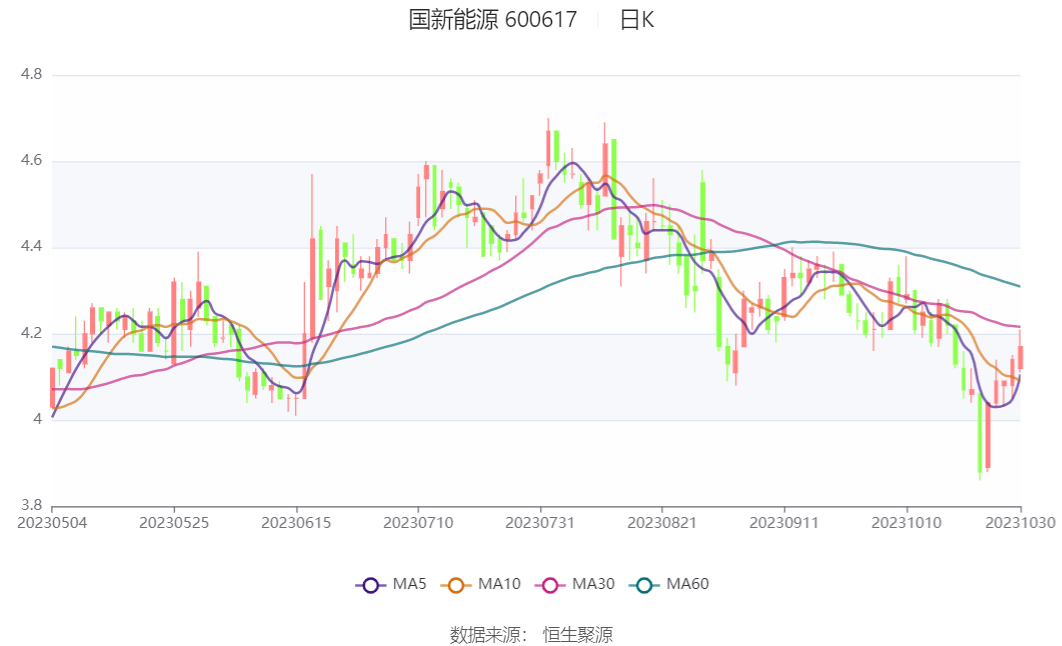 以10月30日收盘价计算,国新能源目前市盈率(TTM)约为109.95倍,市净率(LF)约为1.59倍,市销率(TTM)约为0.35倍。