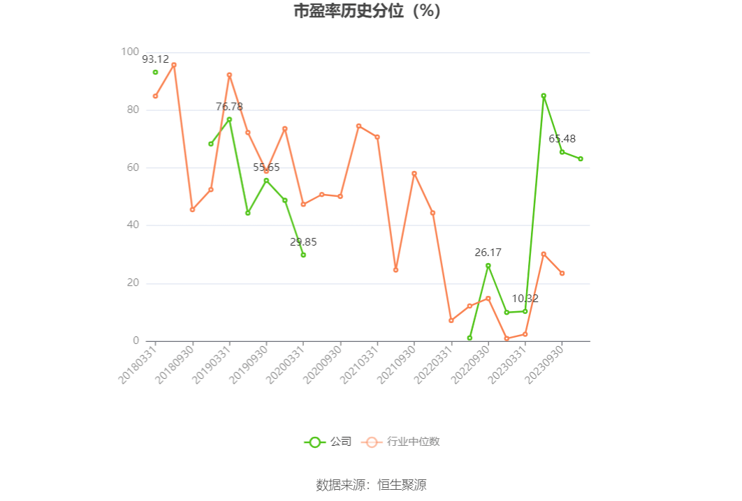 市盈率为负时,不显示当期分位数,会导致折线图中断。
