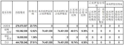 公司近日接到股东驼峰投资的通知,获悉其将质押给海通证券股份有限公司(以下简称“海通证券”)的74,451,000股公司股票办理了延期购回手续,具体情况如下:
