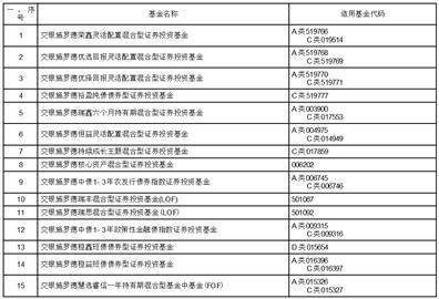 根据交银施罗德基金管理有限公司(以下简称“本公司”)与中国邮政储蓄银行股份有限公司(以下简称“邮政储蓄银行”)签署的销售协议,本公司自2023年10月31日起增加邮政储蓄银行作为旗下基金的销售机构。