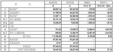 评估结论:最终以资产基础法评估得出评估结论为股东全部权益账面价值30,047.53万元,评估值38,207.09万元,评估增值8,159.56万元,增值率27.16%。