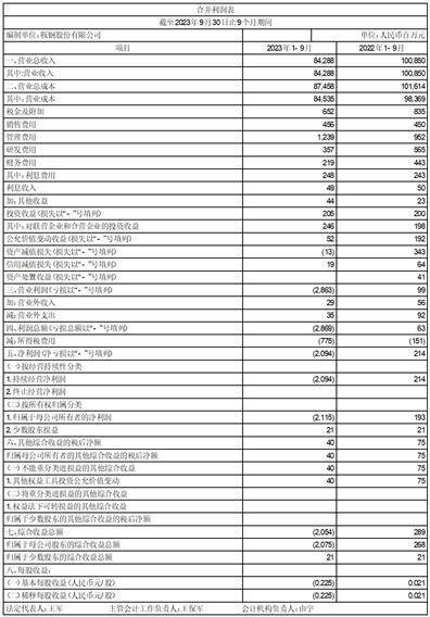 12.年初至报告期末营业利润、利润总额、净利润、归属于母公司所有者的净利润均比上年同期减少,主要原因是受钢铁行业弱周期、低景气影响,钢材售价降幅远大于大宗原燃料价格降幅,利润空间变小影响。