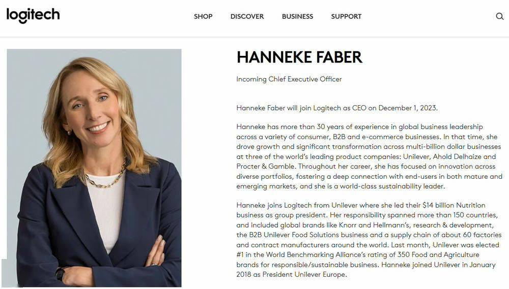 据罗技官方介绍,Hanneke 在各种消费品、B2B 和电子商务业务领域拥有 30 多年的全球业务领导经验。她推动了联合利华、阿霍德德尔海兹(Ahold Delhaize,连锁超市)和宝洁这三个公司价值数十亿美元的业务增长和重大转型。