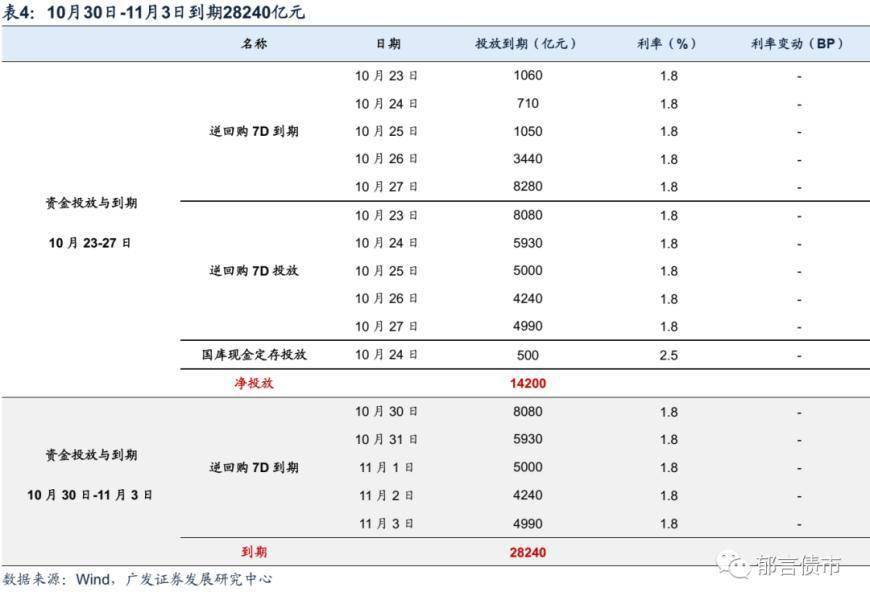 广发固收提醒,10月30日-11月3日,资金面关注的因素: