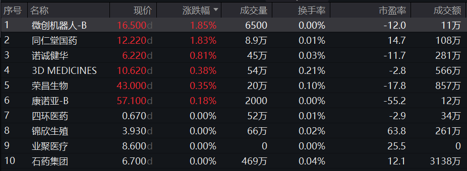 该基金紧密跟踪中证港股通医药卫生综合指数,截至2023年10月31日9:48,指数成份股中,微创机器人-B领涨1.85%,同仁堂国药上涨1.83%,诺诚健华上涨0.81%,3D MEDICINES、荣昌生物等个股跟涨。