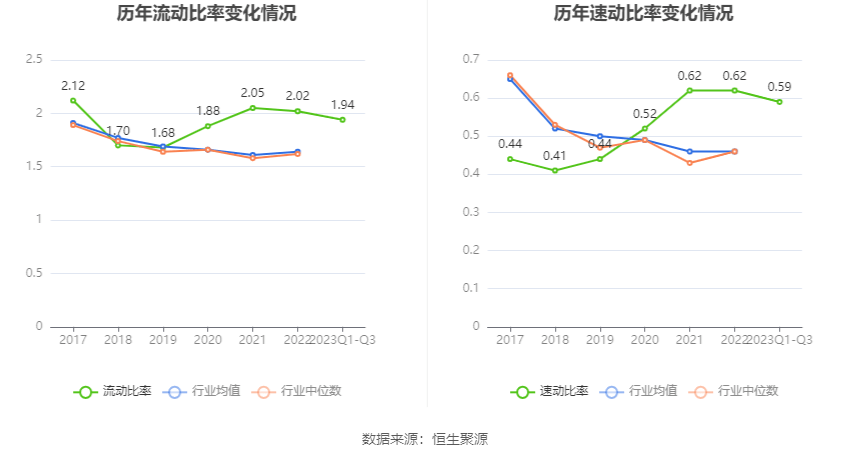 2023年前三季度,公司流动比率为1.94,速动比率为0.59。
