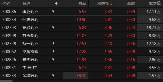 原标题:蒙脱石散概念股震荡走高 康芝药业涨超6%