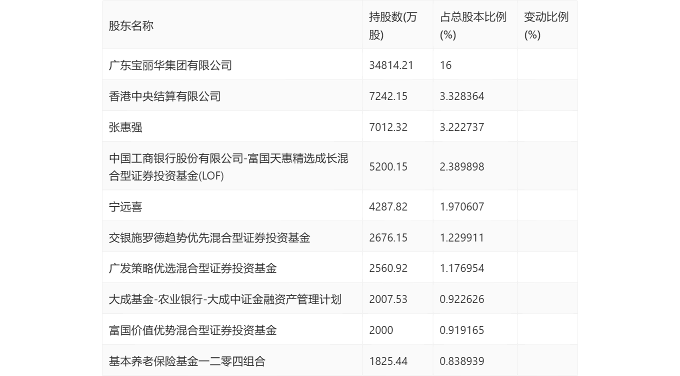 三季报显示,2023年三季度末的公司十大流通股东中,新进股东为广发策略优选混合型证券投资基金、基本养老保险基金一二零四组合,取代了二季度末的上海高毅资产管理合伙企业(有限合伙)-高毅邻山1号远望基金、交银施罗德新成长混合型证券投资基金、交银施罗德定期支付双息平衡混合型证券投资基金。在具体持股比例上,香港中央结算有限公司、富国天惠精选成长混合型证券投资基金(LOF)持股有所上升,张惠强、交银施罗德趋势优先混合型证券投资基金、富国价值优势混合型证券投资基金持股有所下降。