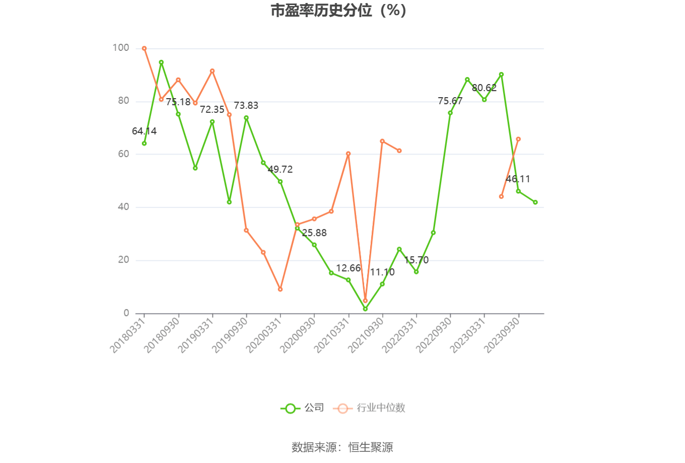 市盈率为负时,不显示当期分位数,会导致折线图中断。