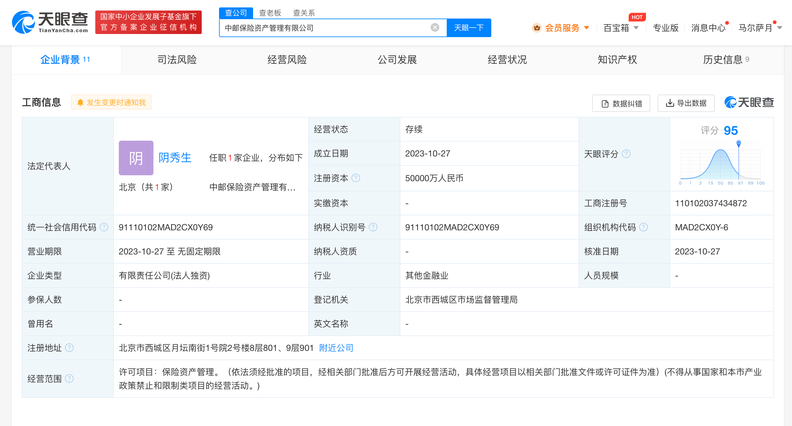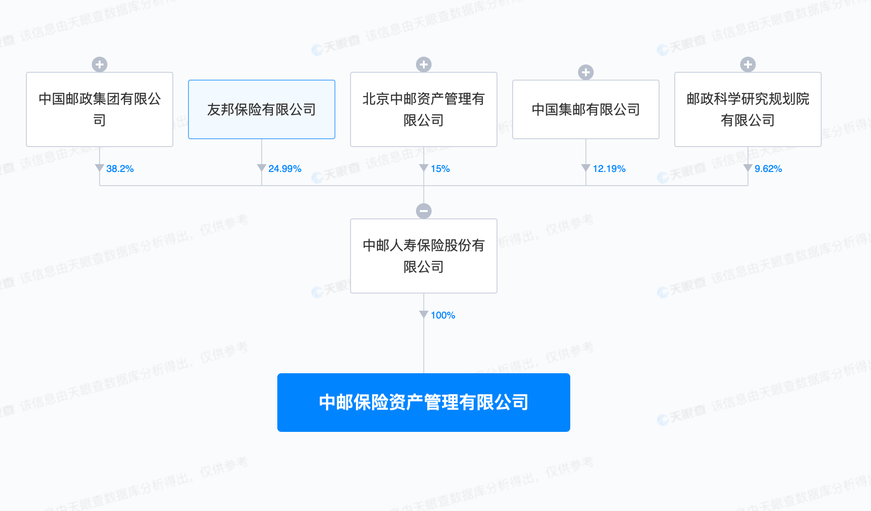 天眼查App显示,近日,中邮保险资产管理有限公司成立,注册资本5亿人民币,董事长为韩广岳,法定代表人、副董事长、总经理为阴秀生,经营范围为保险资产管理。股权全景穿透图显示,该公司由中邮人寿保险股份有限公司全资持股,后者由中国邮政和旗下3家公司,以及友邦保险有限公司共同持股。
