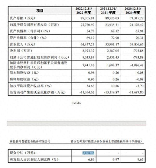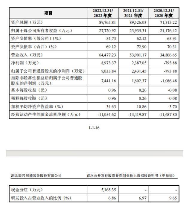 值得注意的是,2020年-2022年,毅兴智能的扣非归母净利分别为-1,086.48万元、1,602.37万元、7,441.16万元,2021年其刚刚扭亏,第二年便进行了分红。