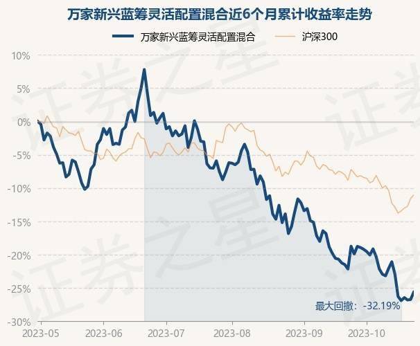 证券之星消息,10月30日,万家新兴蓝筹灵活配置混合最新单位净值为1.8765元,累计净值为2.3702元,较前一交易日上涨1.5%。历史数据显示该基金近1个月下跌7.98%,近3个月下跌19.56%,近6个月下跌25.67%,近1年下跌20.66%。该基金近6个月的累计收益率走势如下图: