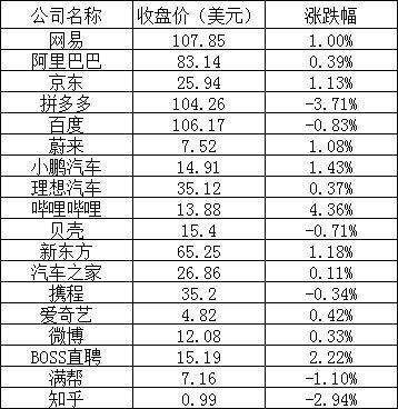 其他热门中概股中,哔哩哔哩上涨4.36%,BOSS直聘上涨2.22%,新东方上涨1.18%,汽车之家上涨0.11%,知乎下跌2.94%,满帮下跌1.10%,百度下跌0.83%,携程下跌0.34%。