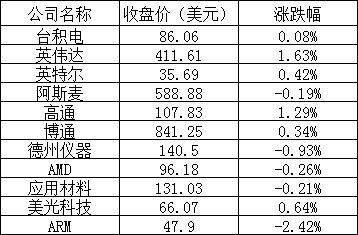 美股中的主要芯片股表现如下:
