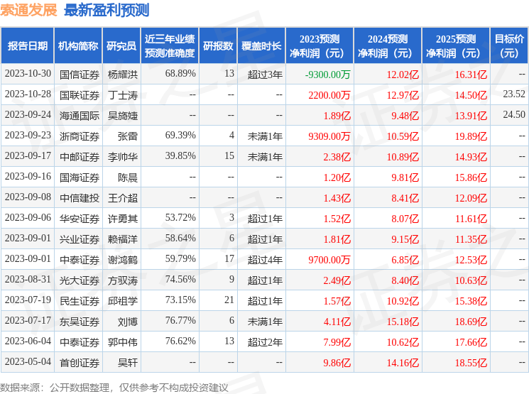 以下是详细的盈利预测信息: