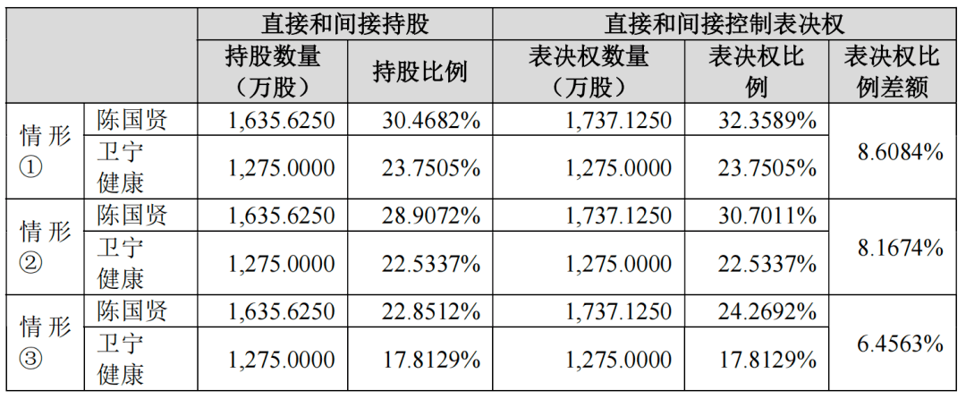 陈国贤直接和间接控制的表决权比例与卫宁健康持有的表决权比例有8.6893%的差额,陈国贤为单一最大持股及控制表决权比例最高的股东,其提名的董事占董事会全体董事半数以上,对公司重要生产经营决策、人事任命等有重大影响。