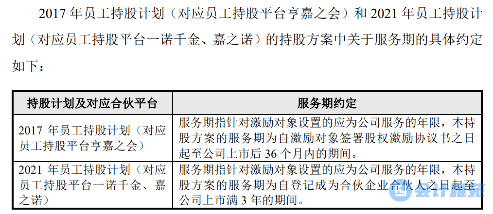 由于 2017 年员工持股计划(对应员工持股平台亨嘉之会)和 2021 年员工持股计划(对应员工持股平台一诺千金、嘉之诺)均设置了服务期条款,根据《企业会计准则第 11 号——股份支付》相关规定, 以及根据《监管规则适用指引——发行类第 5 号》 之 5-1 的指导意见, 发行人两次员工持股计划涉及的股份支付费用需要在服务期内进行分摊。因此,对于实际控制人以外员工获取的股份份额,发行人将对应股份支付费用在服务期内进行摊销,并作为经常性损益处理。