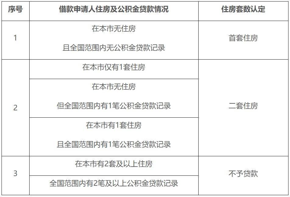 公积金贷款在住房套数认定上不再考虑商业贷款情况。如借款申请人(含共同申请人,下同)在北京市无房且在全国范围内无公积金贷款记录的,执行首套住房公积金贷款政策;如借款申请人在北京市有1套住房的,或在北京市无住房但全国范围内有1笔公积金贷款记录的,或在北京市有1套住房且全国范围内有1笔公积金贷款记录,住房记录与公积金贷款记录不论是否为同一套的,执行二套住房公积金贷款政策;如借款申请人在北京市有2套及以上住房,或已使用过2次公积金贷款的,不予公积金贷款。