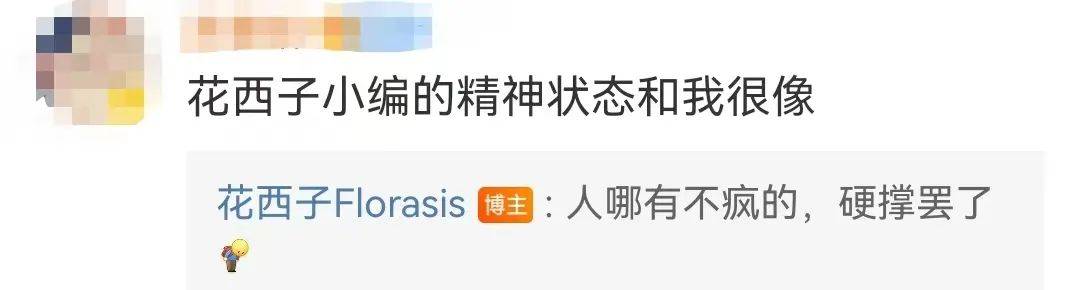 有网友在评论区对花西子这些言论感到疑惑,称:“这运营,不如换我来”。@花西子Florasis 随即跟评称,可上某招聘平台“有没有适合你的岗位”。还有网友发现了花西子小编的“非同寻常”的精神状态,@花西子Florasis 回应说:“人哪有不疯的,硬撑罢了”。