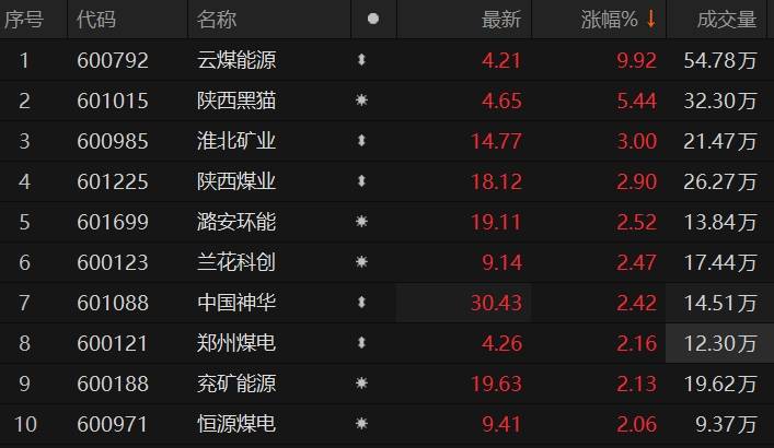 原标题:煤炭板块午后拉升 云煤能源涨停