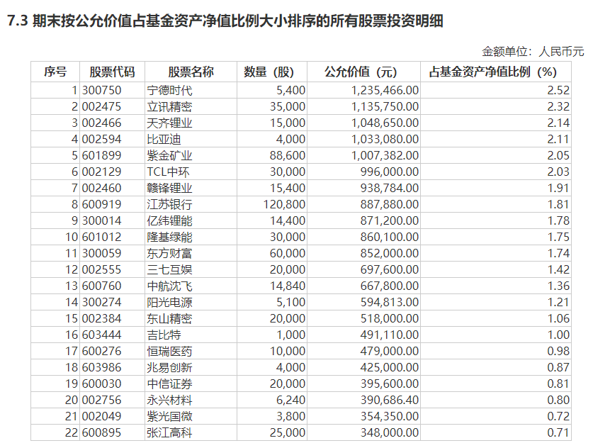 根据过往信息显示,截至2023年6月30日,红塔红土稳健精选持有股票的仓位为33.09%,固定收益投资占比为40.58%,前十大重仓股依次为,宁德时代、立讯精密、天齐锂业、比亚迪、紫金矿业、TCL中环、赣锋锂业、江苏银行、亿纬锂能和隆基绿能。