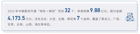 中粮期货推广“保险+期货”业务,助力农业稳产;2022年共开展该项目32个,承保规模9.88亿元。中粮信托则赋能现代农粮产业链,开展农业扶持项目。