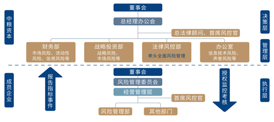 中粮资本目前采用“CIS七要素四支柱全面风险管理体系”,形成法律、合规、内控、风险管理协同运作机制。