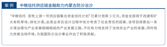 这方面中粮资本以案例形式展现其如何将可持续性纳入项目评估的重要指标。但从整体来看,报告中缺少各成员公司对绿色金融的考量,以及具体绿色投资、绿色债券的发放规模等数据指标。