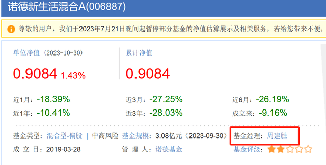 三季度以来的4个月基金大幅回撤,基金净值跌破1元面值,导致了诺德新生活混合成立以来长期基金收益出现亏损,亏损超过9%。
