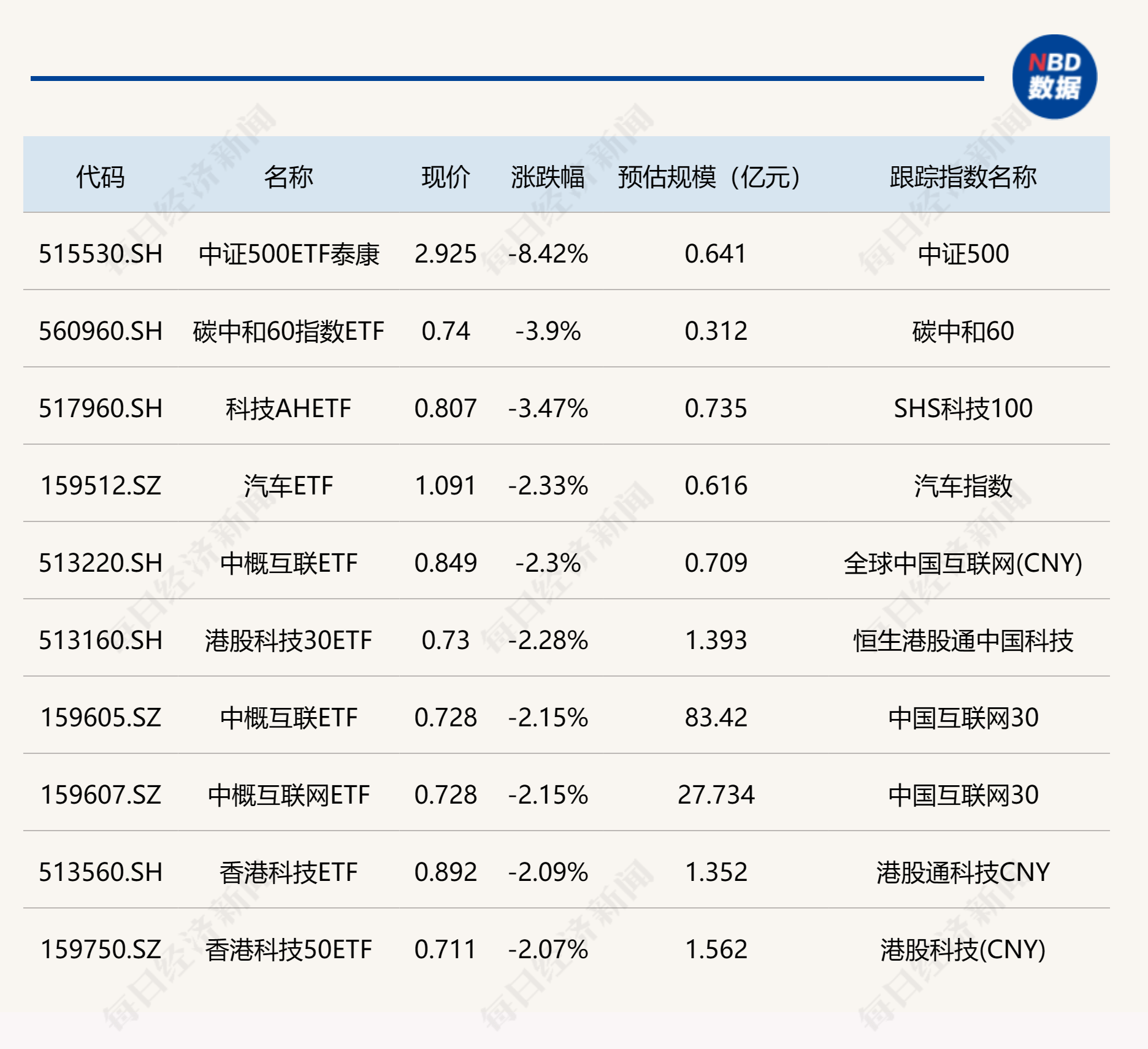 受下跌影响,中概互联ETF、港股科技30ETF、香港科技ETF等跌超2%。