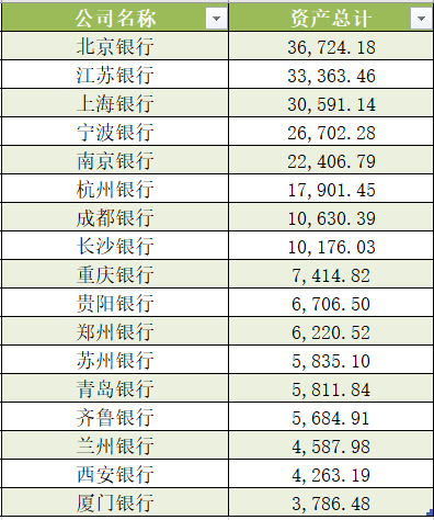 17家A股城商行三季度末资产总额(单位:亿元) 数据来源:wind