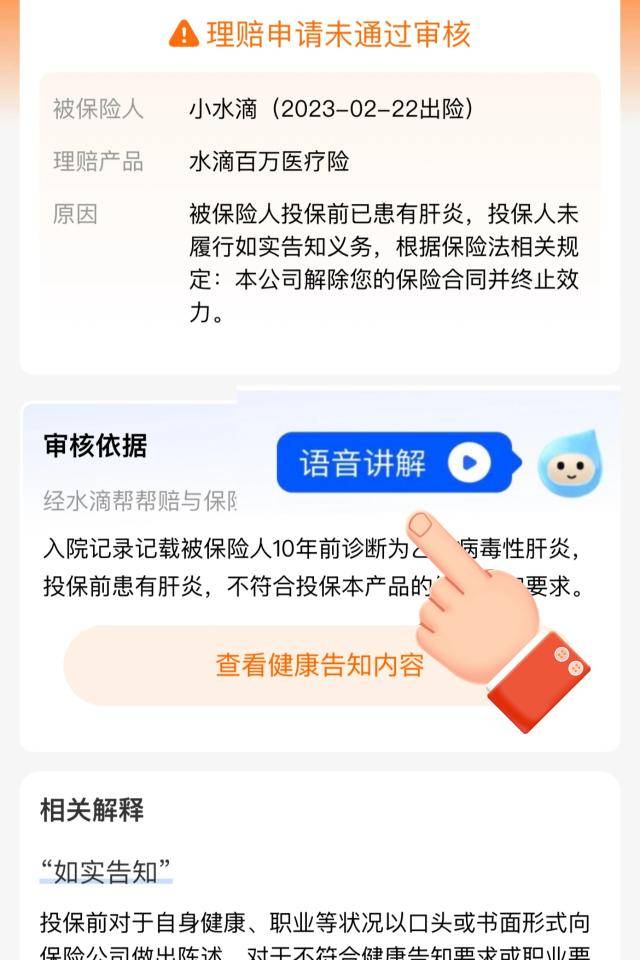 为此,水滴保上线首个“AI语音理赔解读”功能,依托水滴大数据和AI能力,将结论与审核依据、条款依据、专业词汇注释进行智能匹配。用通俗易懂的语言,为客户解答清楚“应该怎么赔?”“赔付的案件金额是怎么结算的?”“如果无法理赔,对应的法律依据和审核依据是什么?”等刚需问题,让客户对每一分理赔金,都清清楚楚,明明白白。