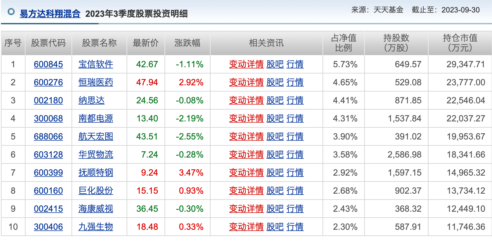 然而,随着基金三季报披露完成,基金重仓股格局发生微妙变化。以药明康德为代表的医药白马股再次成为基金经理的宠儿。