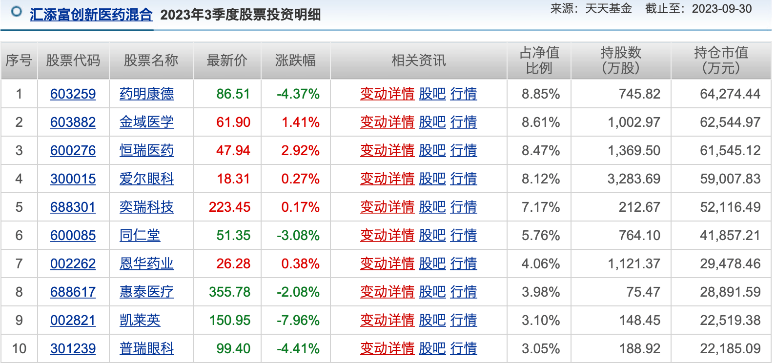 从郑磊的代表作汇添富创新医药混合公布的三季度持股情况来看,重点加仓的是创新药个股。其中,郑磊大举加仓药明康德357万股,持股量达到745.82万股,药明康德成为其第一大重仓股,且持股量较二季度末几乎翻了一倍。此外,还加仓了金域医学和凯莱英等。