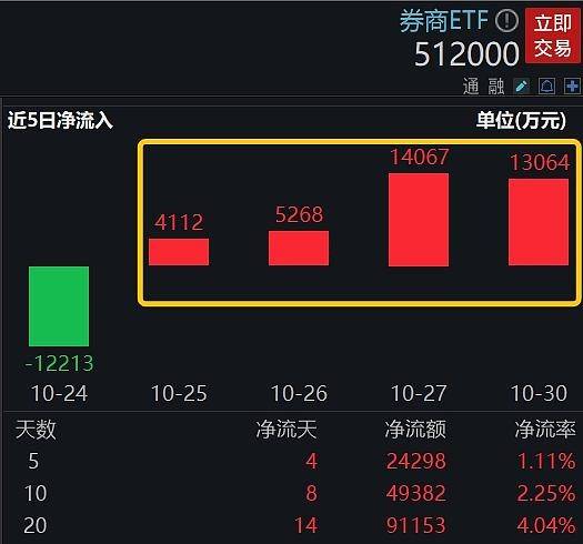 值得注意的是,尽管近期板块行情表现相对平淡,但资金积极借道ETF潜伏蓄势,上交所数据显示,券商ETF(512000)近4日获资金持续净流入合计超3.65亿元,近10日、20日分别累计吸金4.94亿元、9.12亿元。用真金白银彰显了对券商板块后市的乐观预期。